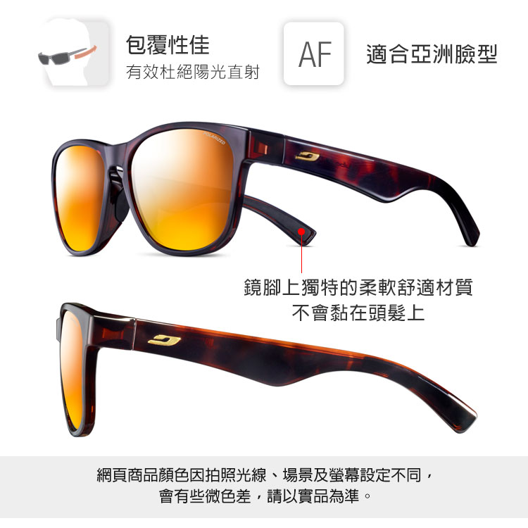 減震鼻墊,柔軟舒適 弧形鏡腳,戴臉或頭上都舒適 包覆性佳,有效杜絕陽光直射 鏡腳上獨特的柔軟舒適材質,不會黏在頭髮上 透氣性佳不起霧 適合亞洲臉型